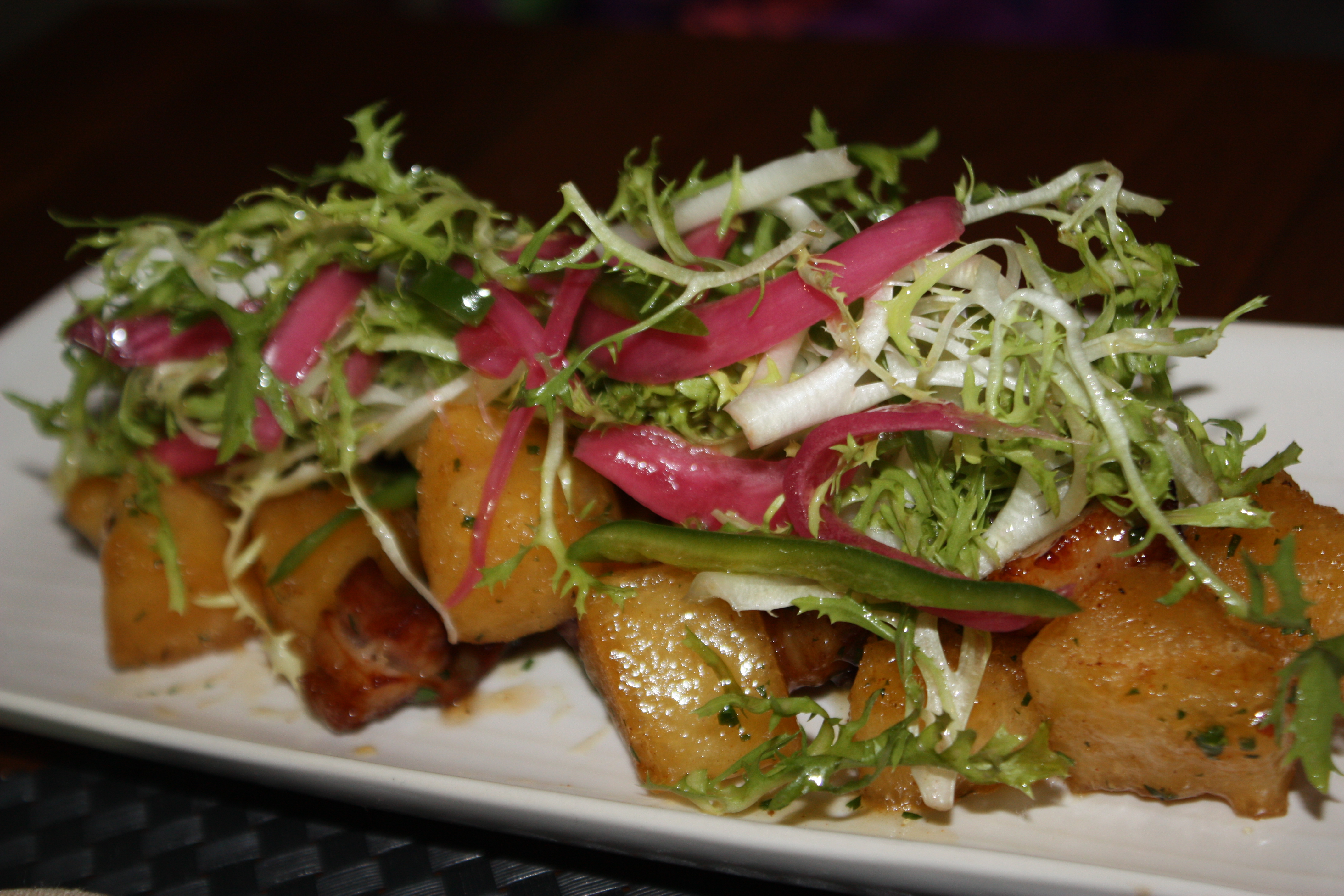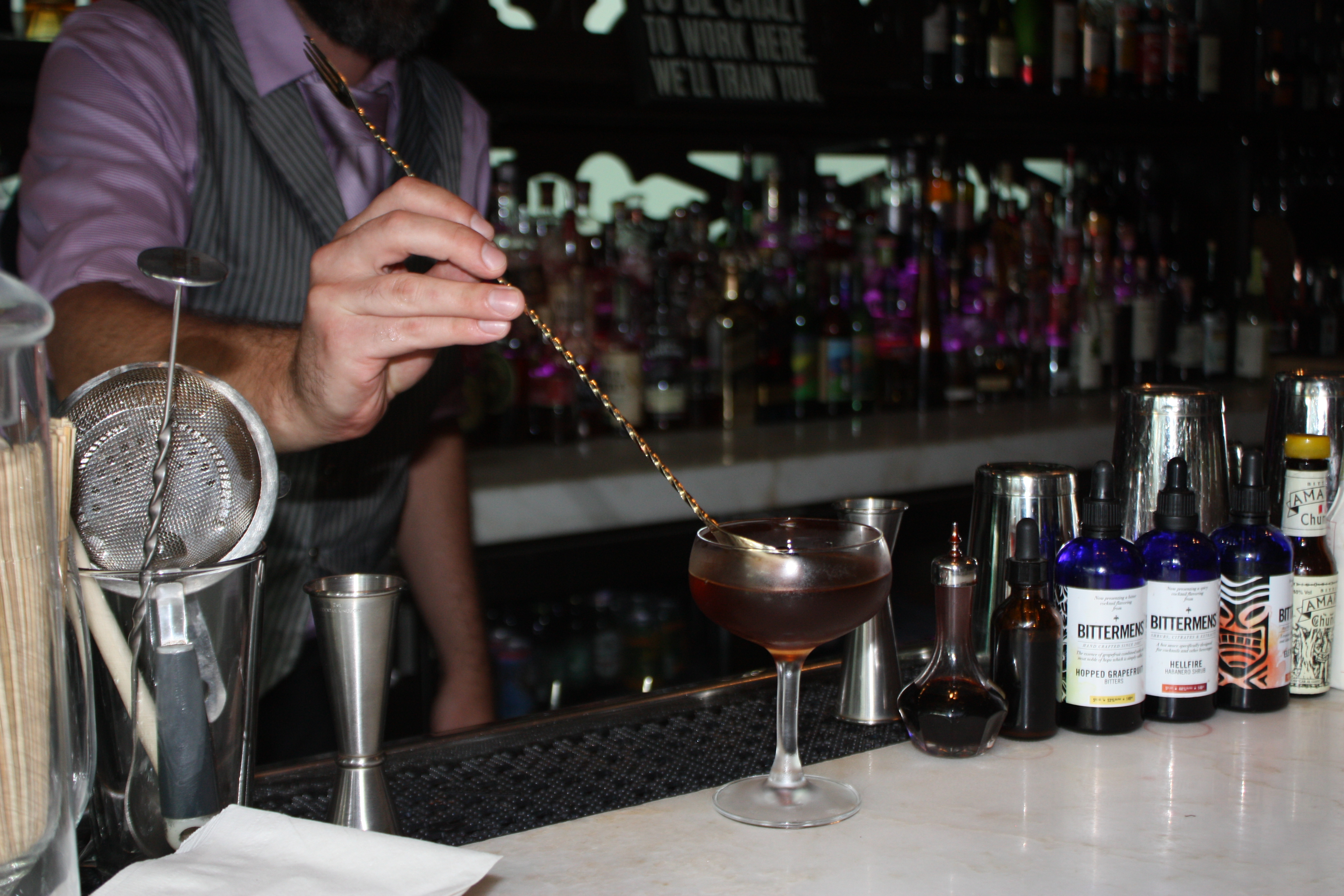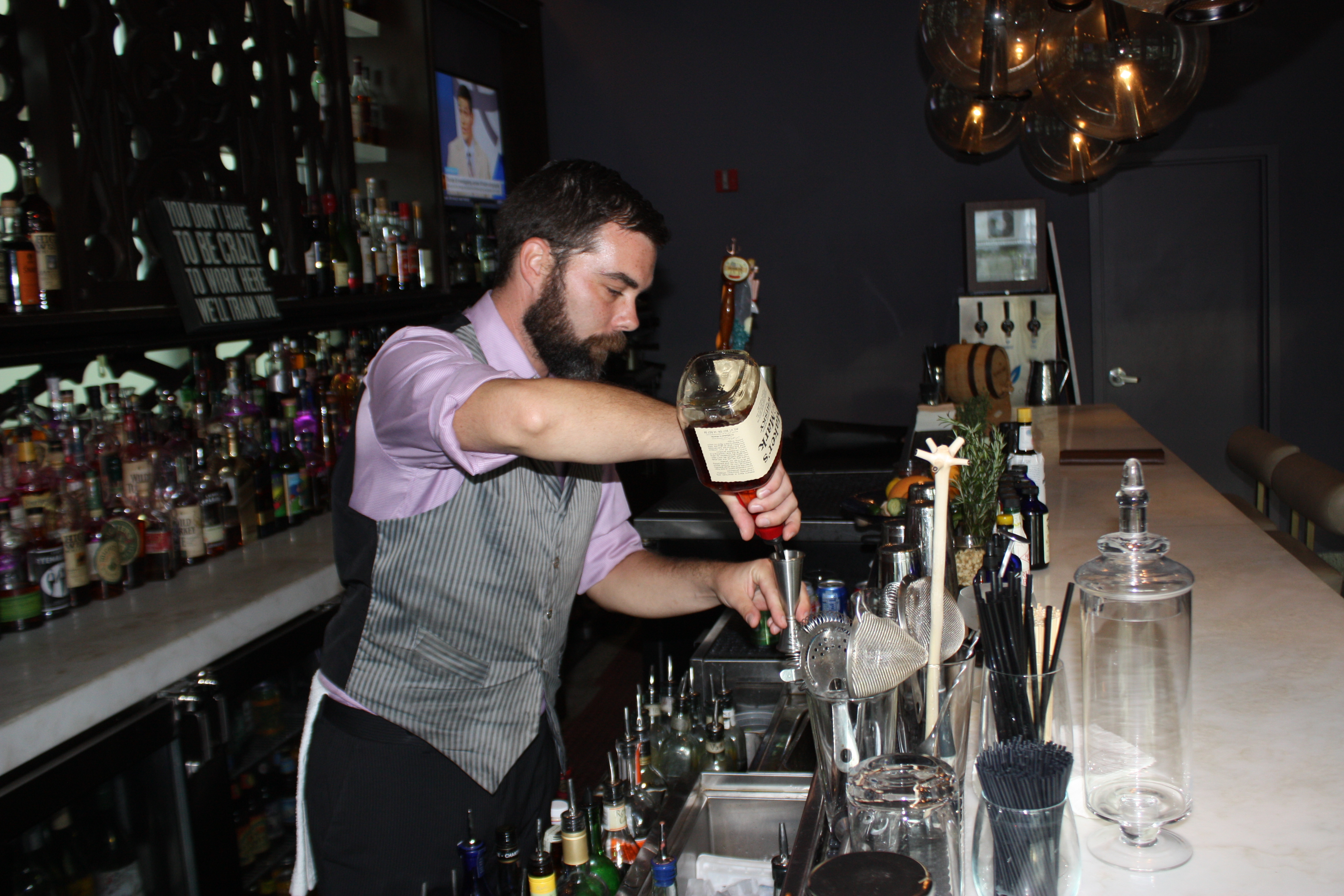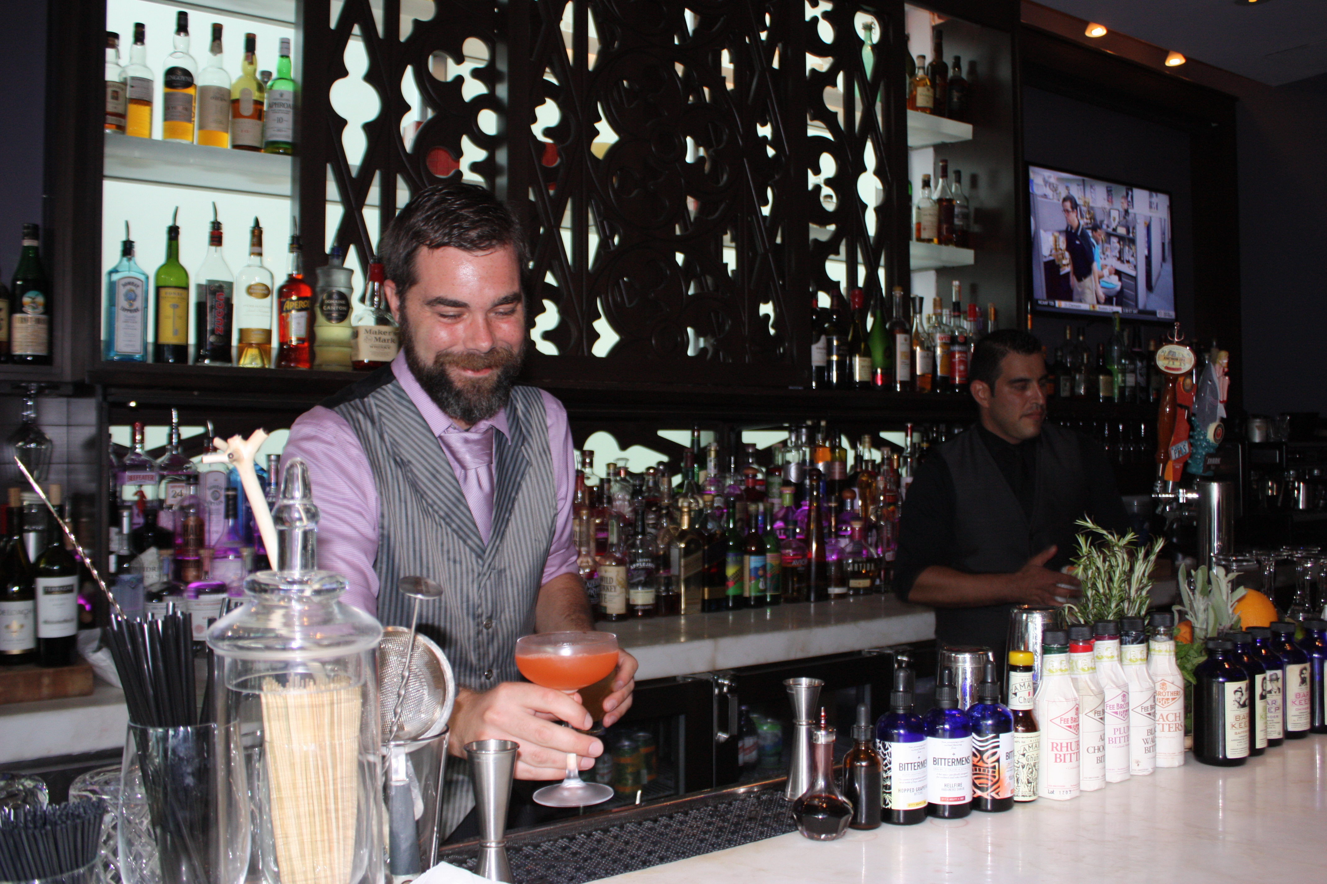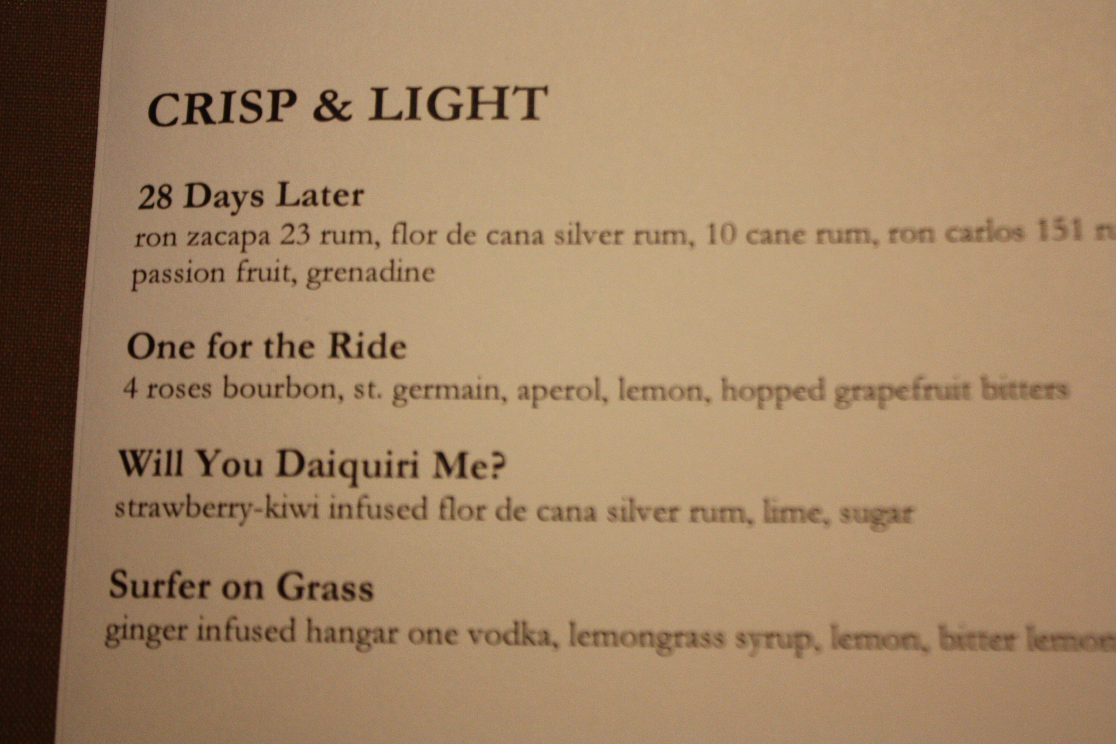 The level of cuisine and mixology here is in a league of it’s own. Thanks to head bartender Chad Phillips, drinks are made the way they were meant to be. Too often here in Miami do drinks come with glow sticks or an umbrella. Neither is anywhere to be found at The Social Club. The signature happy hour drink is the Pisco Punch. It is a handcrafted special that is featured during their “punch the clock” special. Between 4pm to 7pm the punch costs between $4 -$7 depending on the hour it is ordered. It was delish. The happy hour also offers various small bites to order. The Crab & Sweet Corn Fritters were good. Since I am from Maryland it is rare to find a crab recipe in Miami that is authentic. I met their new executive chef Blair Wilson. He hails from Alexandria, Va which is chesapeake bay country, so it makes sense. The Social Club happy hour also has $7 classic cocktails and $5 microbrews and $5 house wine. Once again head bartender Chad Phillips’ deft touch makes each drink perfect every time. I ventured off their happy hour choices and tried a Manhattan In The Fall cocktail. It’s made with a bit of maple syrup as one example. Just that touch of sweetness brought the bourbon to life in a way I have never experienced before. My hubby tried The Will You Daiquiri Me. It was incredible.