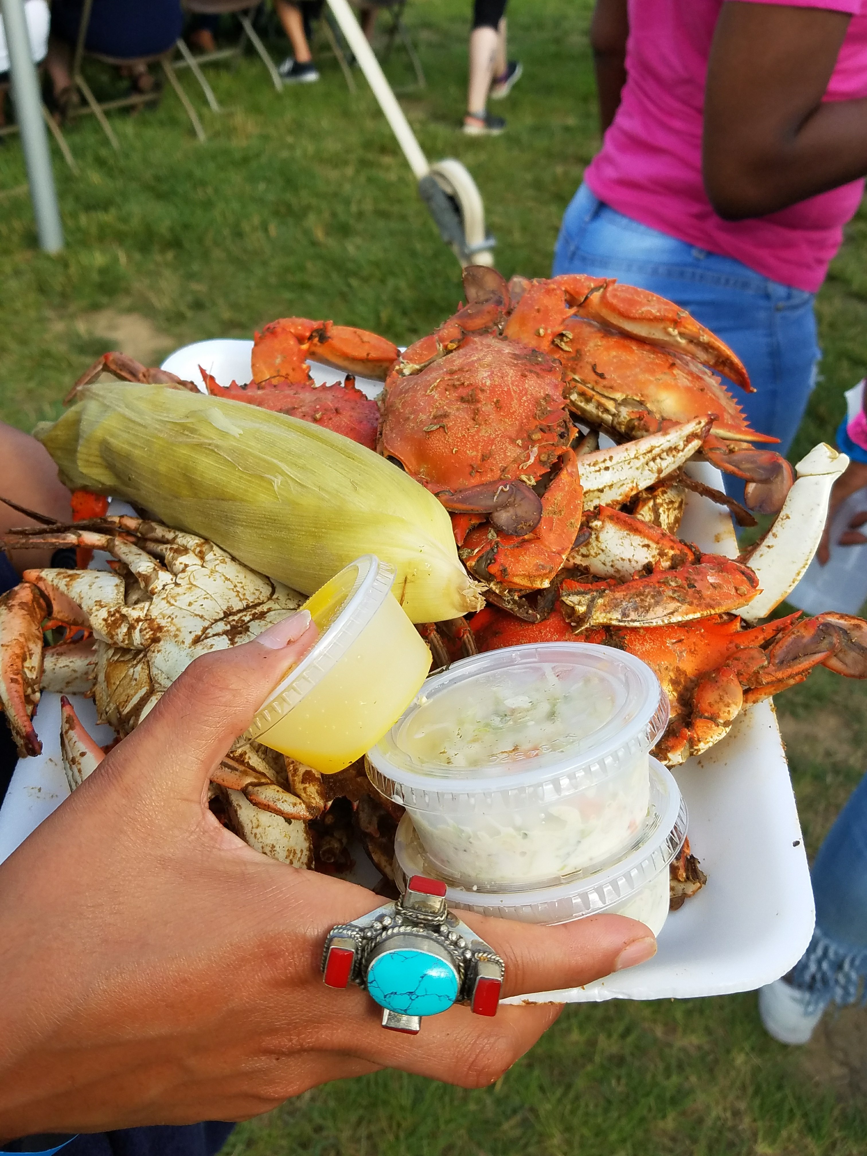 Families and Friends came out in fun hats and custom made tees to enjoy this festival. There is a beach area for kids to play in the sand, yard games for everyone to enjoy, live music to dance to and so much more! This family friendly event is popular because KIDS 3 AND UNDER ARE FREE! However, there was a KID’S CRAB ONLY PACKAGE (AGES 4– 20): $29 Advance (plus taxes & fees) This option offered guests ages 4 -20 an ALL YOU CARE TO TASTE experience of Crabs, Corn on the Cob, Cole Slaw and Potato Chips. (Ticket purchasers with VIP ticket holders will be GUARANTEED communal seating under a tent.)
