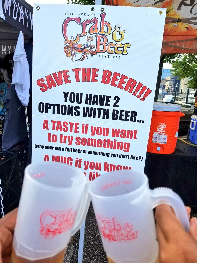 I attended the ALL YOU CARE TO TASTE VIP experience. Guests received a souvenir mug and mallet, unlimited tastes of the beer and wine on-site. This includes ALL YOU CARE TO TASTE Crabs, Corn on the Cob, Cole Slaw and Potato Chips.* Ticket purchasers are GUARANTEED communal seating under a tent.