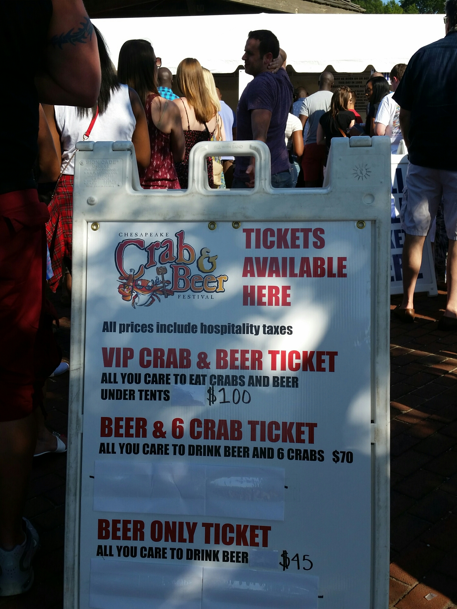 I attended the ALL YOU CARE TO TASTE VIP experience. Guests received a souvenir mug and mallet, unlimited tastes of the beer and wine on-site. This includes ALL YOU CARE TO TASTE Crabs, Corn on the Cob, Cole Slaw and Potato Chips.* Ticket purchasers are GUARANTEED communal seating under a tent.