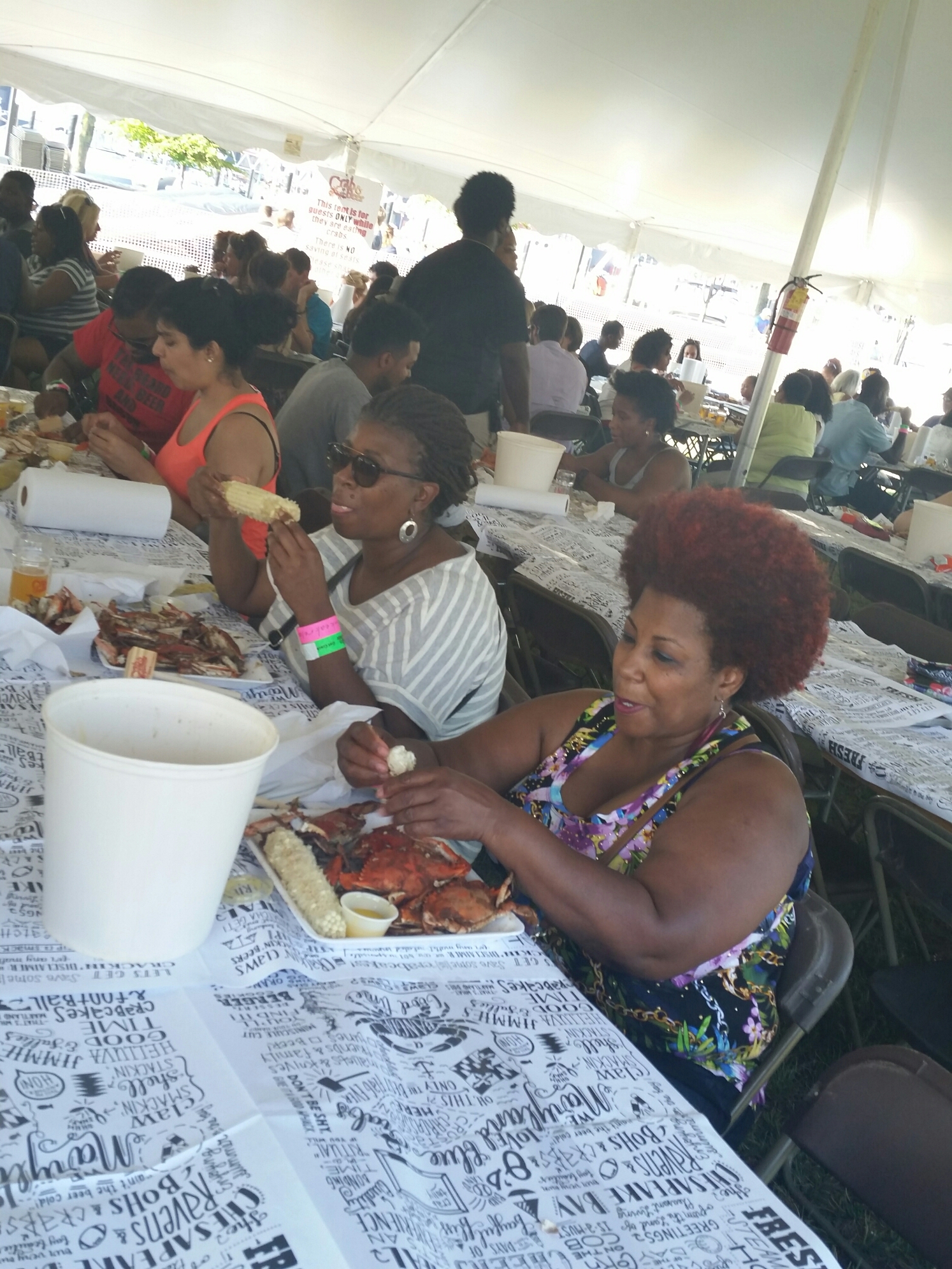 Plenty of seating for crackin’ to your heart’s content. They even ordered enough crab paper to stretch all the way across the Harbor and back. ALL SHOW FEATURES are undercover – so Rain or Shine – we were all fine.